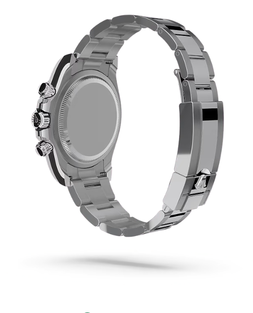 The Cosmograph Daytona in Oystersteel features a white dial with contrasting chronograph subdials.