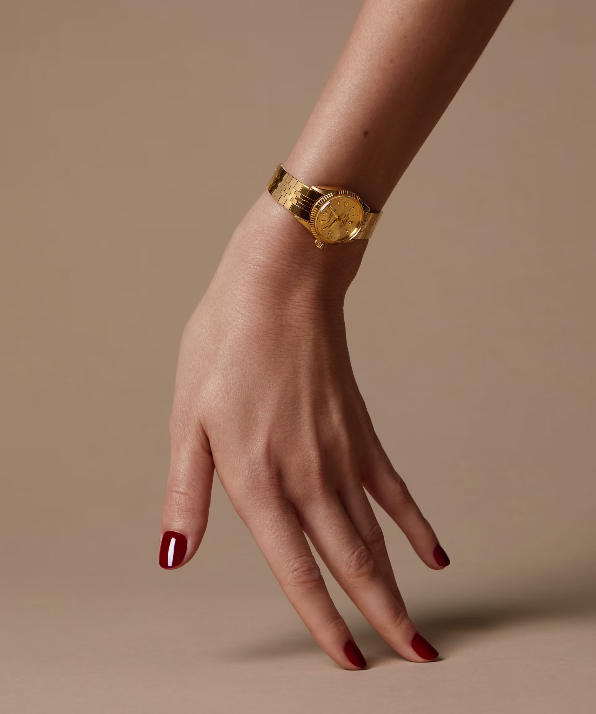 Ladies' Datejust gold model with white dial and Jubilee design.