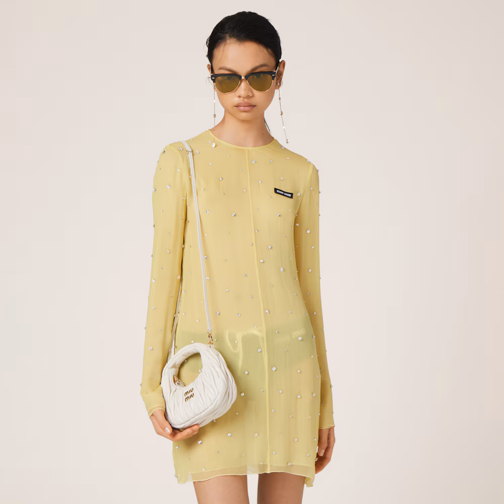 Miu Miu bags: Wander Matelassé mini Hobo bag in soft lambskin leather, small crescent bag.