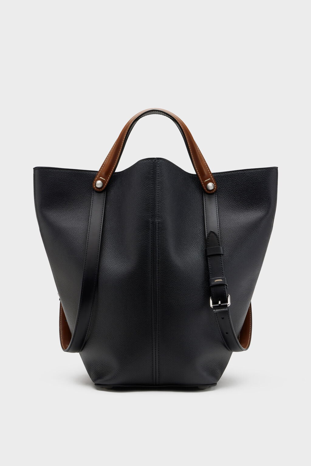 The Maison launches the Dress-age handbag for SS25, crafted from soft pebbled calfskin. With an equestrian spin, the medium handbag features classic leatherwork and refined lines, combining unconscious glamour with gestural design. It follows a trapezoid shape with contrast dual-wear strap detail. The studded base allows the bag to stand, and the inner is adorned with the logo. Maison Margiela's signature, the four stitches, appear at the back; the opposite of a label.